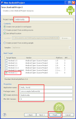 4. Centang versi platform pada Build Target, misal: Android 2.2